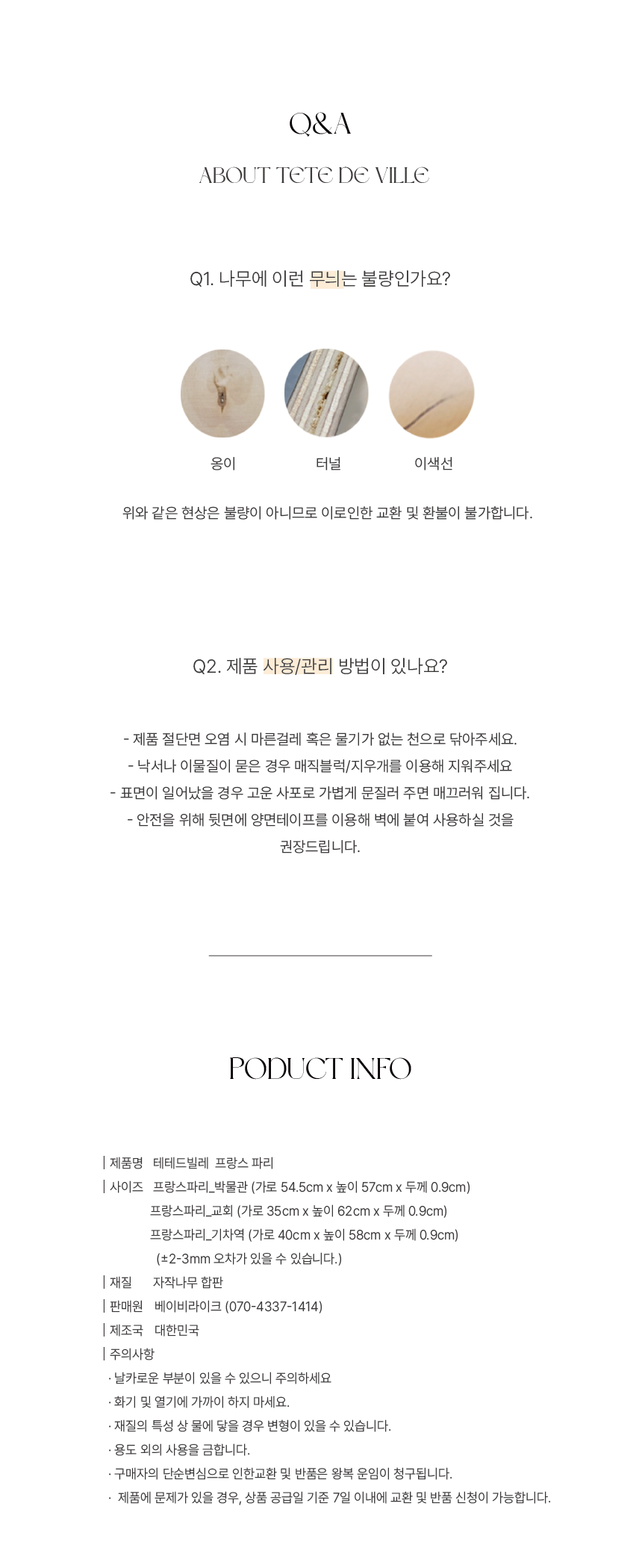 - 제품 특성상 단순 변심, 부주의에 의한 제품 손상 및 파손, 사용 및 개봉한 경우 교환/반품이 불가합니다.