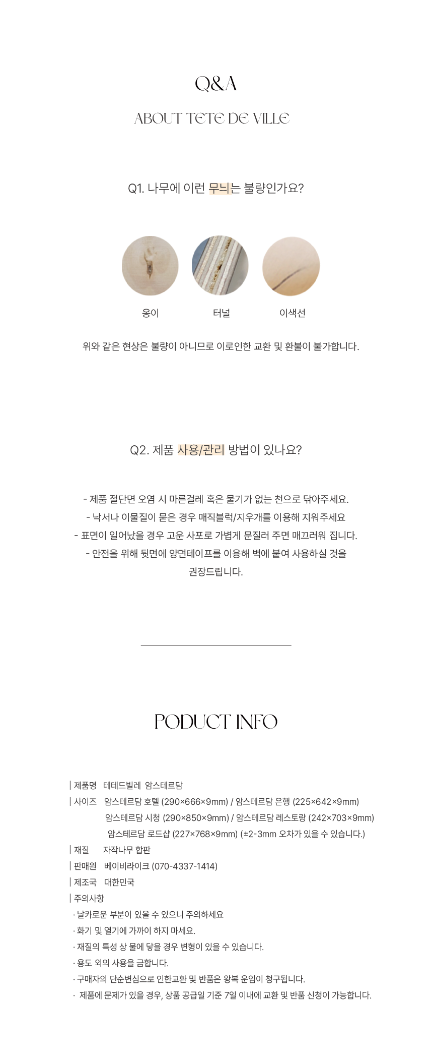 - 제품 특성상 단순 변심, 부주의에 의한 제품 손상 및 파손, 사용 및 개봉한 경우 교환/반품이 불가합니다.