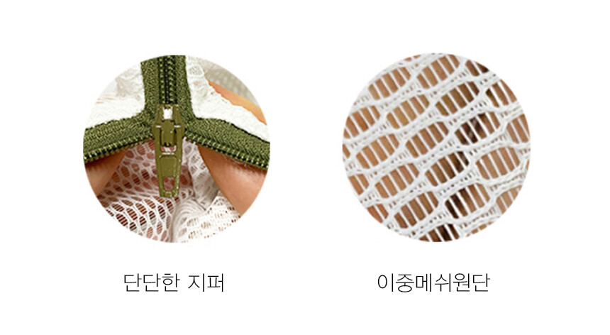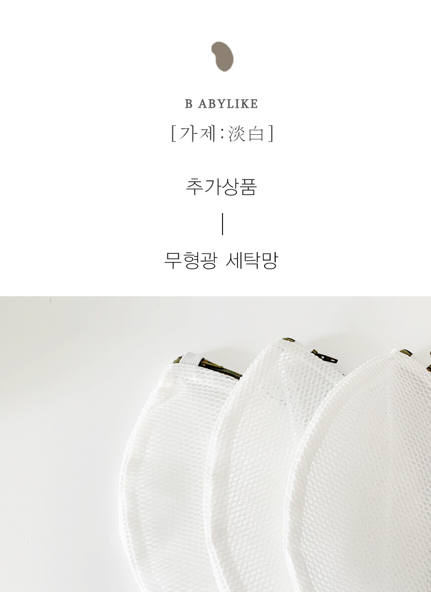 세탁까지 안심하고 쓸 수 있도록, 이중 매쉬 원단으로 옷감손상을 최소화하고 무형광 소재로 안심하고 사용할 수 있습니다.